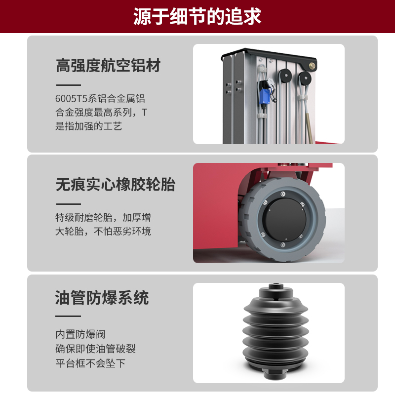 揚(yáng)子升降平臺(tái)DZ1:智能雙控系統(tǒng),擁有優(yōu)質(zhì)鋁合金輕便機(jī)身,輕松移動(dòng),應(yīng)用領(lǐng)域廣泛,支撐平穩(wěn),還有充電保護(hù),大容量電池組,無(wú)痕實(shí)心橡膠輪胎,可調(diào)節(jié)自動(dòng)升降。