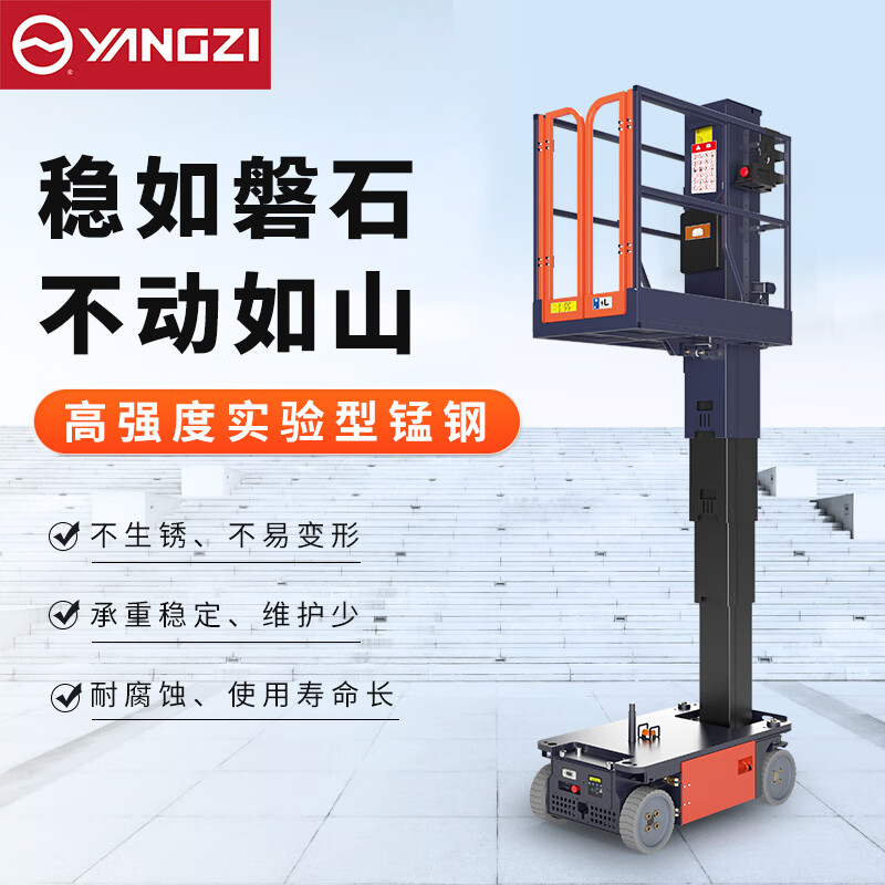 套筒式升降平臺AMWP:揚子這款升降機更加平穩(wěn),自行式高空作業(yè)平臺,智能操作更方便。