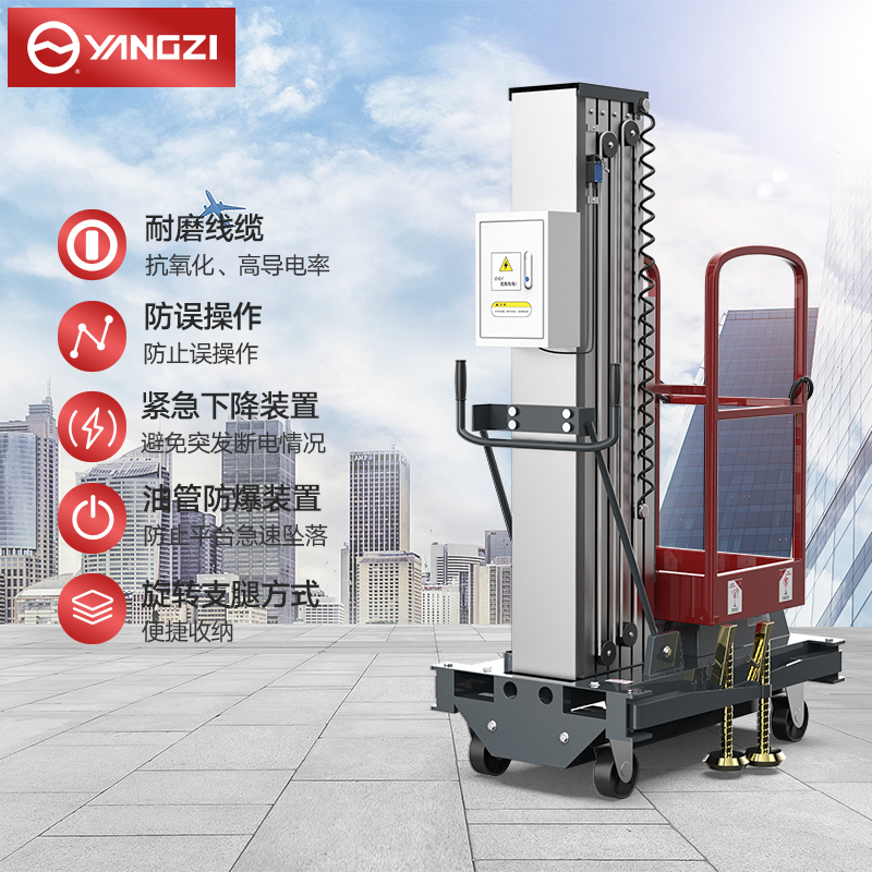 揚(yáng)子平臺(tái)單柱鋁合金升降機(jī)YZDD:機(jī)身預(yù)留有叉車孔方便機(jī)器升降移動(dòng),更是能配合鏟車使用,人性化旋轉(zhuǎn)支腿,旋轉(zhuǎn)的支腿方式可以便捷收納機(jī)身更穩(wěn)定。